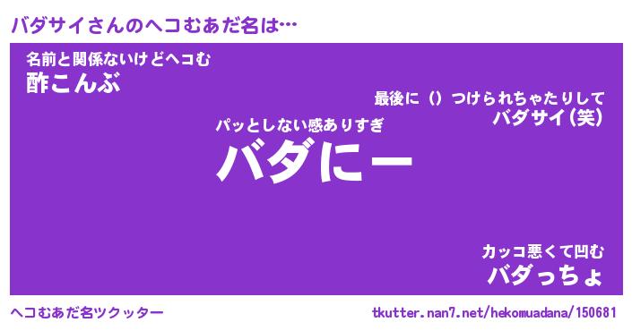 | 意味不明あだ名 | 『ペロリンバダサイ』『永久保存バダサイ』 |