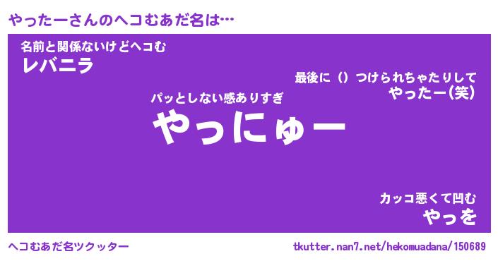 | ファンタジー風あだ名 | 『ヤッフェル』『エターナルヤッターー』 |