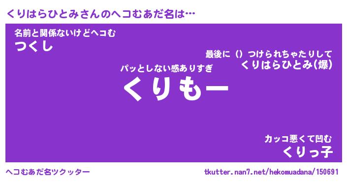 | 恥ずかしいあだ名 | 『プリティーくりはらひとみ』『くりちん』 |