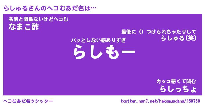 | 意味不明あだ名 | 『ペロリンらしゅる』『永久保存らしゅる』 |