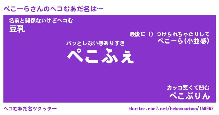 | 男性向けラノベタイトル風あだ名 | 『ぺこーらの憂鬱』 |