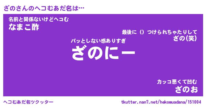 | 男性向けラノベタイトル風あだ名 | 『ざのの憂鬱』 |
