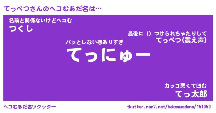 | 意味不明あだ名 | 『ペロリンてっぺつ』『永久保存てっぺつ』 |