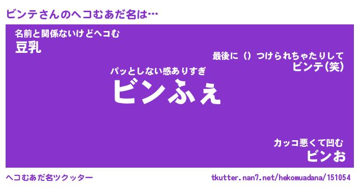 | ヒーロー風カッコイイあだ名 | 『スーパービンテ』『ウルトラビンテマン』 |