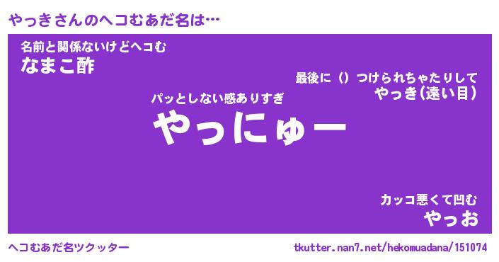 | 胡散臭い通販商品みたいなあだ名 | 『億万長者になれる水晶球…その名も「やっき」』 |