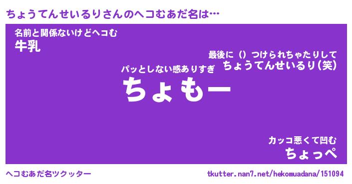 | ヒーロー風カッコイイあだ名 | 『スーパーチョウテンセイルリ』 |