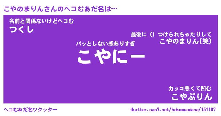 | ヒーロー風カッコイイあだ名 | 『スーパーコヤノマリン』『幻影騎士コヤ』 |
