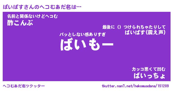 | ポケモン風あだ名 | 『バイチュウ』『バイパダネ』 |