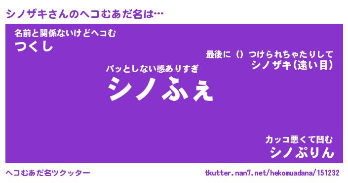 | ファンタジー風あだ名 | 『シノフェル』『エターナルシノザキー』 |