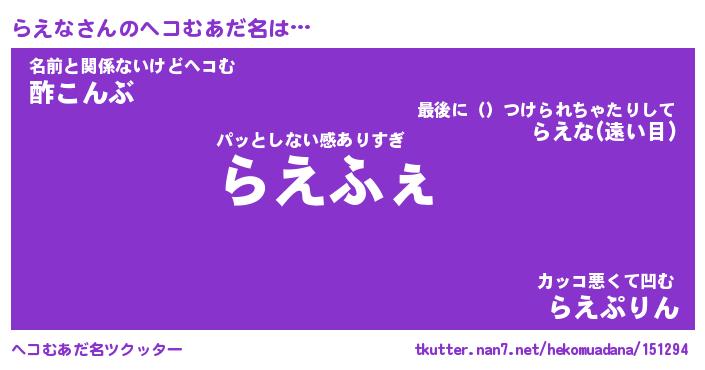 | 意味不明あだ名 | 『ペロリンらえな』『らえなフォーエバー』 |