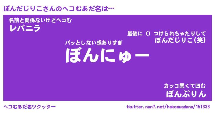 | 胡散臭い通販商品みたいなあだ名 | 『モテモテ間違いなし水晶球…その名も「ぼんだじりこ」』 |