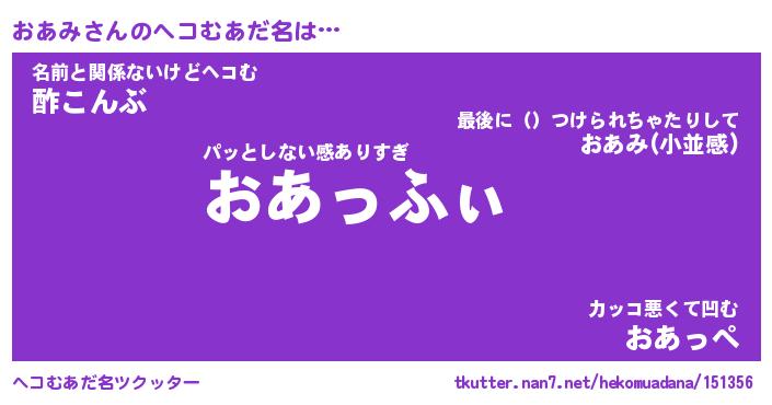 | 意味不明あだ名 | 『ペロリンおあみ』『おあみフォーエバー』 |