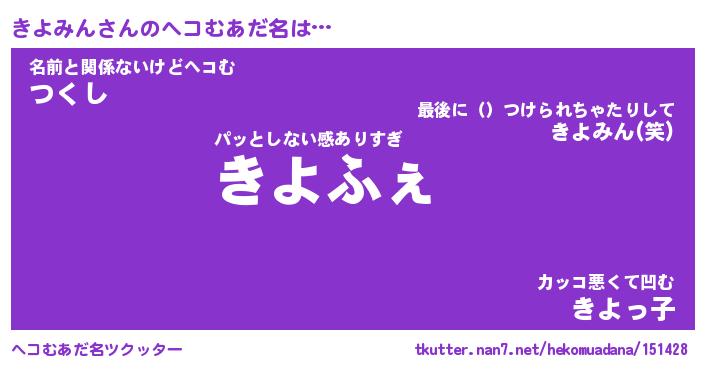 | 男性向けラノベタイトル風あだ名 | 『きよみんの憂鬱』 |