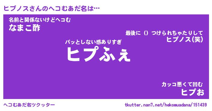 | 意味不明あだ名 | 『ペロリンヒプノス』『永久保存ヒプノス』 |