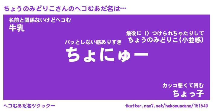 | 欧米人風あだ名 | 『マイケルちょうのみどりこ』 |
