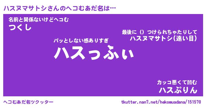 | ヒーロー風カッコイイあだ名 | 『スーパーハスヌマサトシ』 |