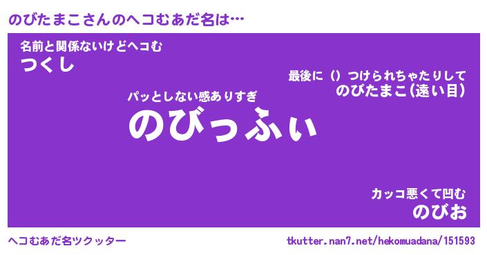 | ヒーロー風カッコイイあだ名 | 『スーパーノビタマコ』『銀牙騎士ノビ』 |