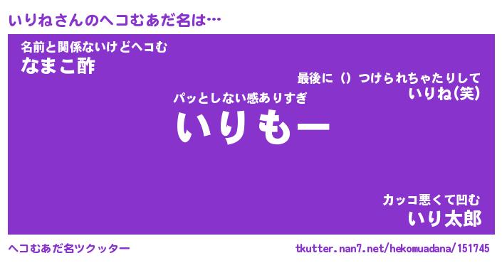 | 男性向けラノベタイトル風あだ名 | 『いりねの憂鬱』 |