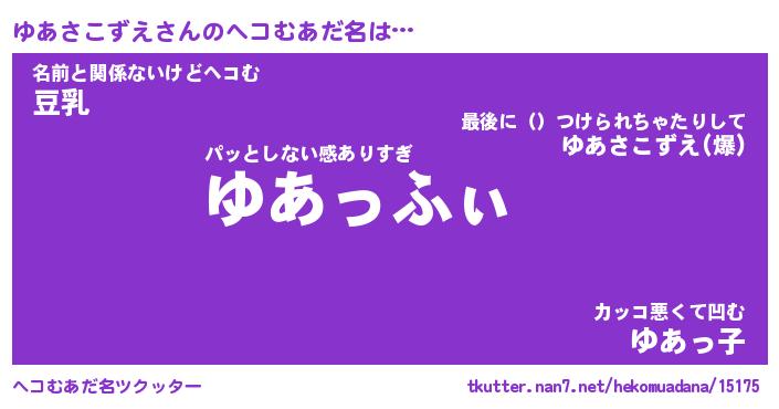 | 2回繰り返すあだ名 | 『ゆあゆあ』『ゆゆああ』『うずうず』 |