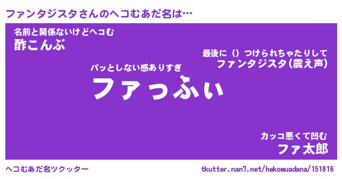 | ファンタジー風あだ名 | 『ファフェル』『ファントムファス』 |