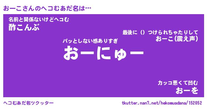 | 意味不明あだ名 | 『ペロリンおーこ』『おーこフォーエバー』 |