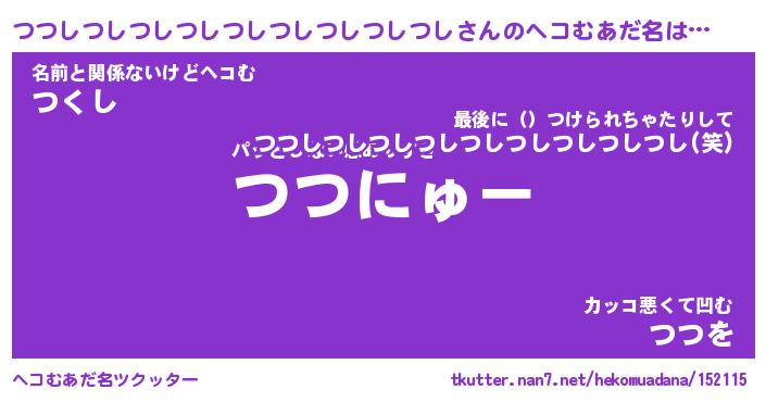 | 男性向けラノベタイトル風あだ名 | 『つつしつしつしつしつしつしつしつしつしの憂鬱』 |