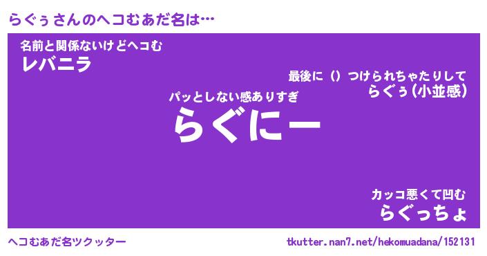 | 2回繰り返すあだ名 | 『らぐらぐ』『ららぐぐ』『なあなあ』 |