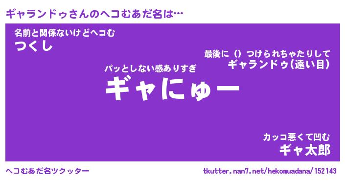 | 2回繰り返すあだ名 | 『ギャギャ』『ギギャャ』『ぬめぬめ』 |