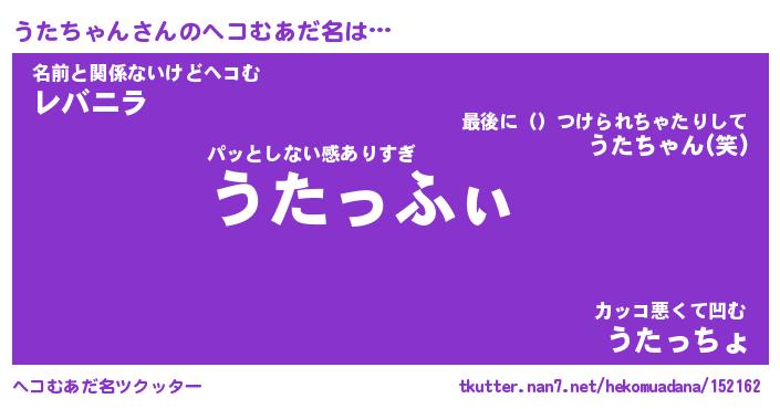| ファンタジー風あだ名 | 『ウタフェル』『エターナルウタチャンー』 |