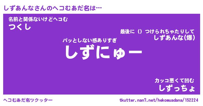 | ファンタジー風あだ名 | 『シズフェル』『エターナルシズアンナー』 |
