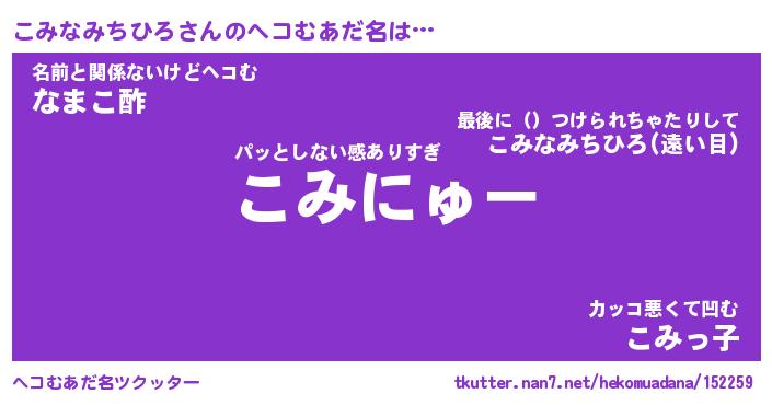 | 恥ずかしいあだ名 | 『プリティーこみなみちひろ』『こみちん』 |