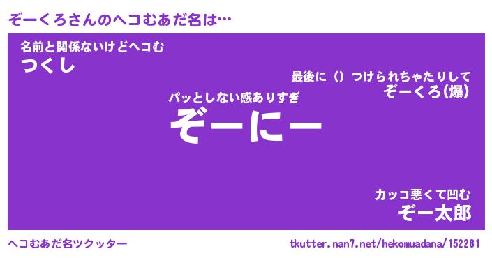 | 意味不明あだ名 | 『ペロリンぞーくろ』『永久保存ぞーくろ』 |
