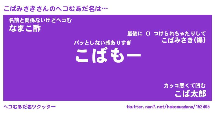 | 2回繰り返すあだ名 | 『こばこば』『ここばば』『ぬめぬめ』 |
