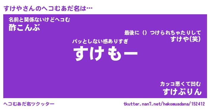 | 意味不明あだ名 | 『ペロリンすけや』『すけやフォーエバー』 |