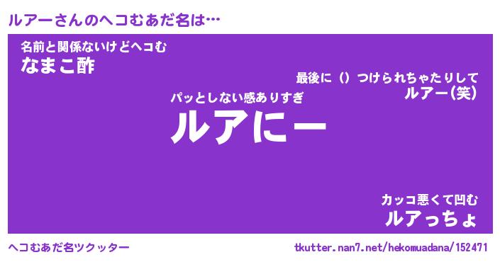 | 2回繰り返すあだ名 | 『ルアルア』『ルルアア』『がみがみ』 |