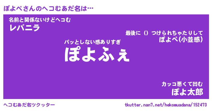 | ファンタジー風あだ名 | 『ポヨフェル』『エターナルポヨペー』 |