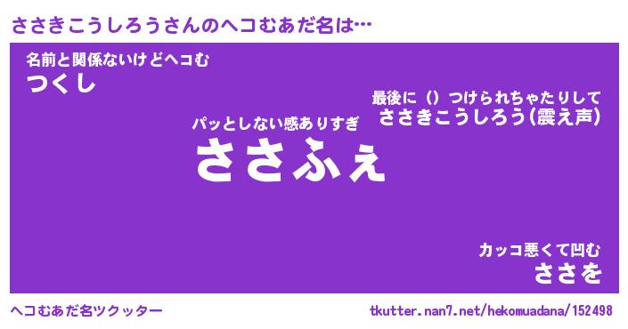 | ヒーロー風カッコイイあだ名 | 『スーパーササキコウシロウ』 |