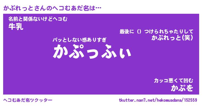 | 恥ずかしいあだ名 | 『プリティーかぷれっと』『かぷっちょ』 |