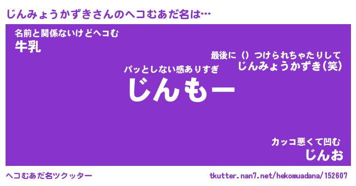 | 女子向けラノベタイトル風あだ名 | 『(仮)じんみょうかずきのやんごとなき事情』 |