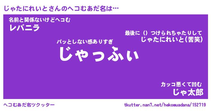| 2回繰り返すあだ名 | 『じゃじゃ』『じじゃゃ』『ぬらぬら』 |