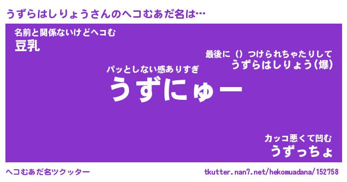 | 自動車の名前っぽいあだ名 | 『ウズティマ』『ウクア』『デミウ』 |