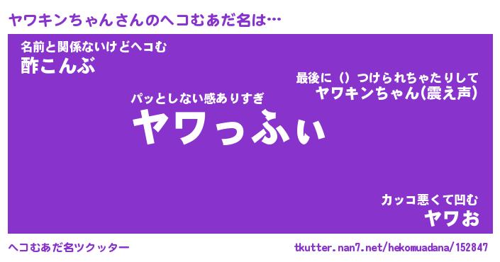 | 恥ずかしいあだ名 | 『プリティーヤワキンちゃん』『ヤワちん』 |