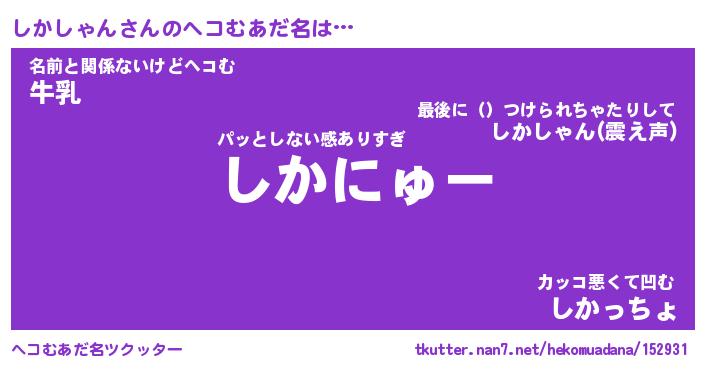 | ファンタジー風あだ名 | 『シカフェル』『エターナルシカシャンー』 |
