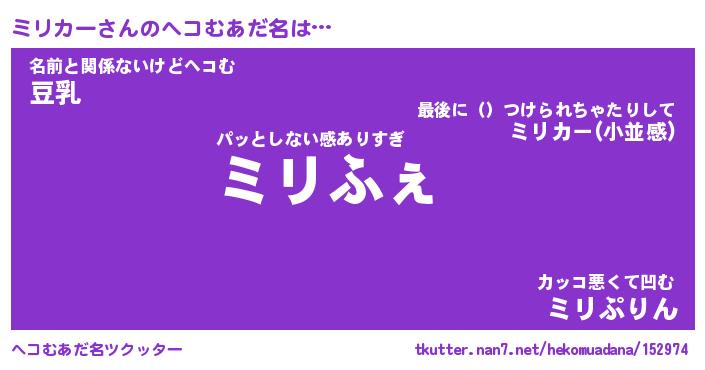 | ファンタジー風あだ名 | 『ミリフェル』『エターナルミリカーー』 |