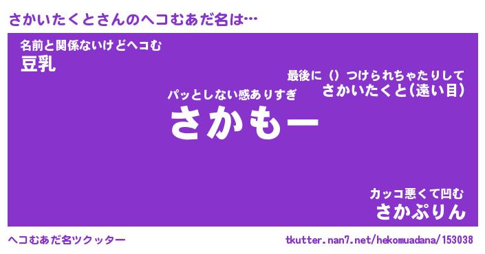 | ヒーロー風カッコイイあだ名 | 『スーパーサカイタクト』『天弓騎士サカ』 |