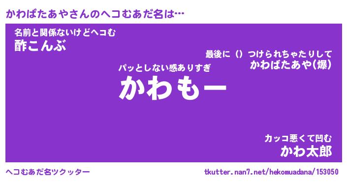 | 恥ずかしいあだ名 | 『プリティーかわばたあや』『かわっちょ』 |
