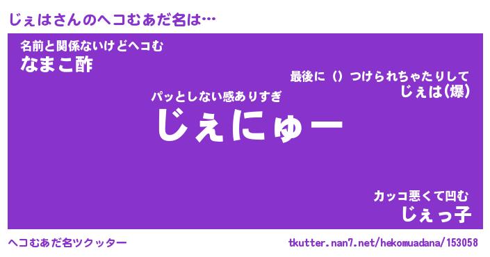 | ヒーロー風カッコイイあだ名 | 『スーパージェハ』『ウルトラじぇはマン』 |