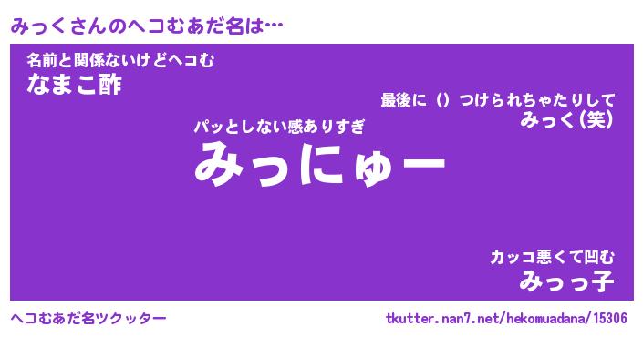 | 意味不明あだ名 | 『ペロリンみっく』『みっくフォーエバー』 |