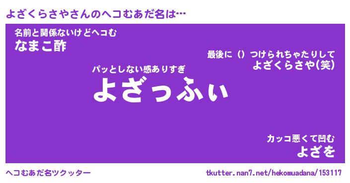 | 伝説のあだ名 | 『伝説のスナイパーよざくらさや』 |