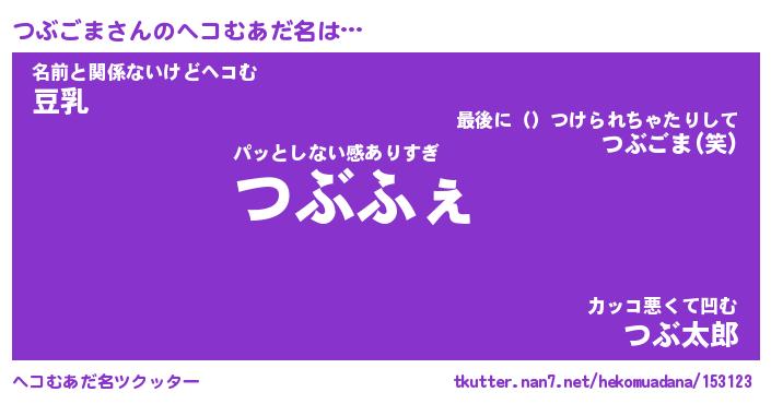 | ポケモン風あだ名 | 『ツブチュウ』『ツブゴダネ』 |